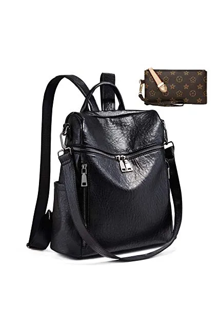 Backpack for women Fashion Leather Ladies Rucksack Crossbody Shoulder Bag 2pcs Purses Backpack Set