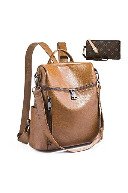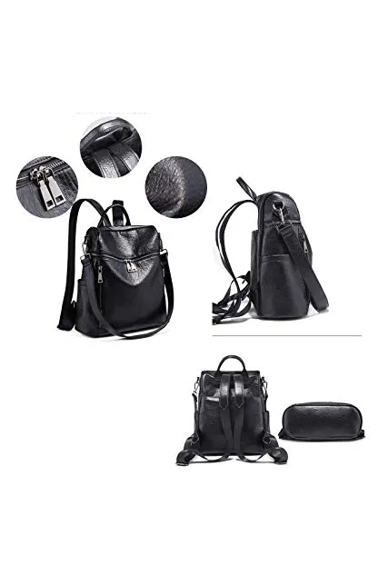 Backpack for women Fashion Leather Ladies Rucksack Crossbody Shoulder Bag 2pcs Purses Backpack Set