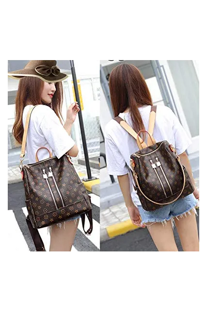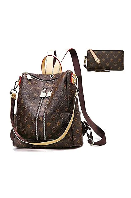 Backpack for women Fashion Leather Ladies Rucksack Crossbody Shoulder Bag 2pcs Purses Backpack Set