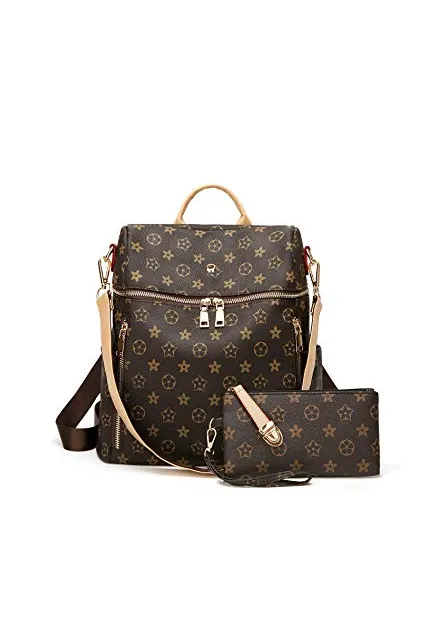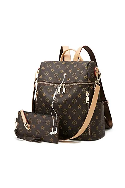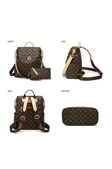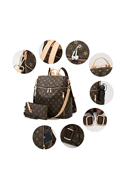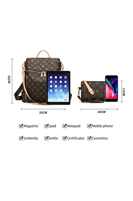 Backpack for women Fashion Leather Ladies Rucksack Crossbody Shoulder Bag 2pcs Purses Backpack Set