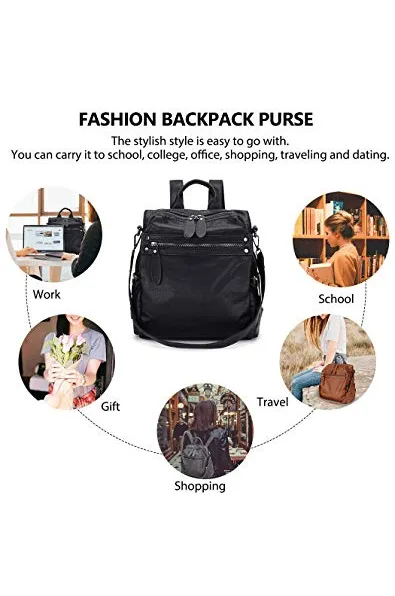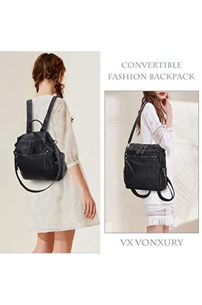 Backpack Purse for Women, PU Leather Fashion Convertible Backpack Shoulder Bag Ladies Rucksack In 2 Ways To Carry VONXURY