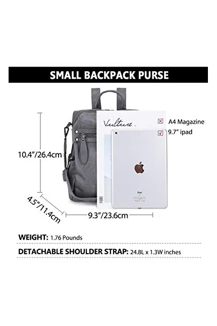 - ❤ROOMY & PERFECT SIZE:This backpack has a fully lined main compartment with a zip around the top and plenty of room for your wallet, cosmetic case, sunglasses, water bottle, and small portable electronic devices. The interior includes two zippered pocket for valuables and two slip pockets to hold your cell phone or other small items while the exterior offers two zippered pockets for added storage.(Size: H10.43 x L9.25 x W4.53inches)