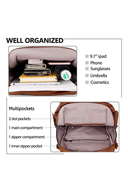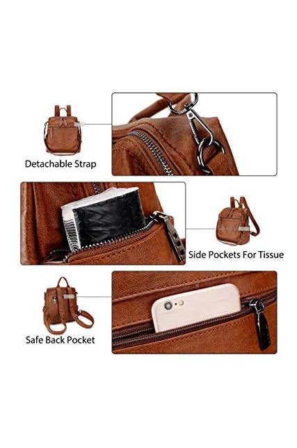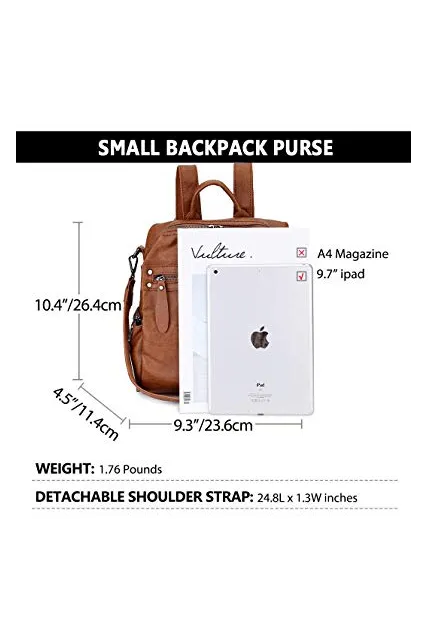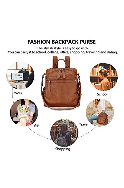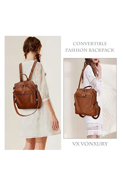 Backpack Purse for Women, PU Leather Fashion Convertible Backpack Shoulder Bag Ladies Rucksack In 2 Ways To Carry VONXURY