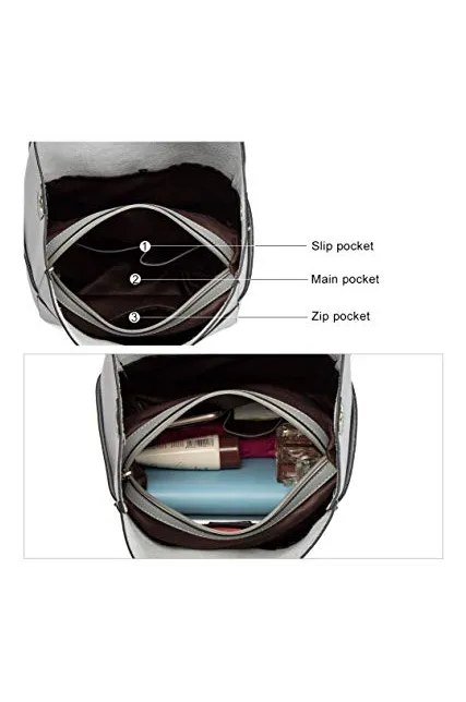 - [Structure]: Internal structure is one main compartment and one removable pouch. And the removable zipper pouch including 1 main pocket+1 inner zipper pouch + 2 slip pockets, one of which is a cell phone pocket and one is a ID card slot. External structure including 2 side slip pockets and 2 metal magnetic buckle pocket that one in the front and the other in the back.