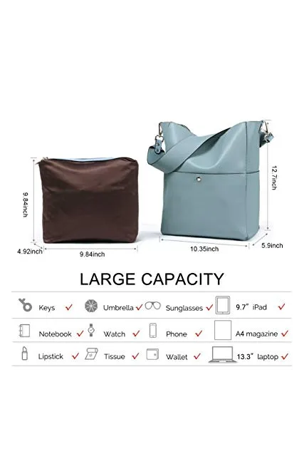 - [Design]: The bucket bag made by professional artisans, appearance concise, atmosphere and powerful. Large capacity designed allow you can comfortably hold an iPad, iPhone6s Plus, wallet, cosmetic, and other daily things, perfect to use as daily handbags for working, shopping, or dating.
