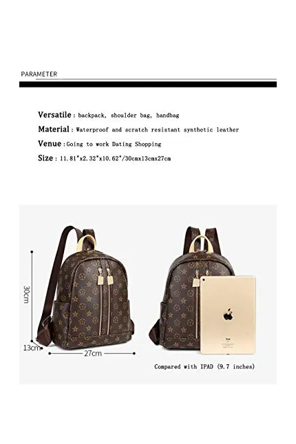 - 【Specification】: The purse backpack body size(L*W*H) :30 x 27 x 13cm/11.81 x 10.62 x 5.11 incches ; The adjustable double shoulder straps for users of different sizes :53cm/20.86inches - 93cm/36.61 inches;weight : 0.7kg/1.54lbs