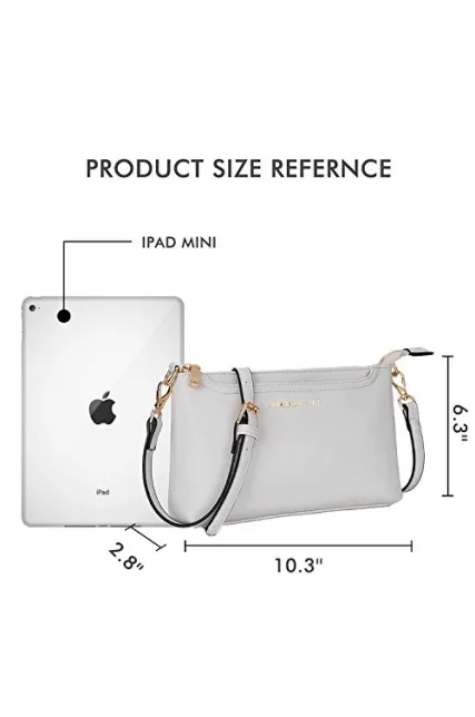 - LADIES HANDBAG SIZE: 10.3”(L)x 2.8”(W) x 6.3”(H). PU leather shoulder strap can be removed and adjusted according to own preference (Drop ranges from 25" to 21"). Narrow shoulder strap is more reliability and not easy slipping off.