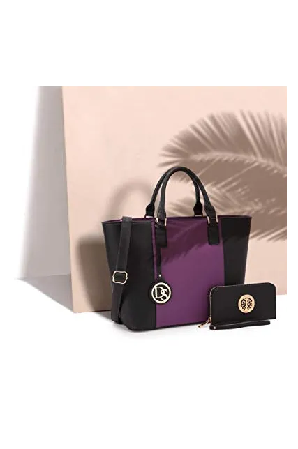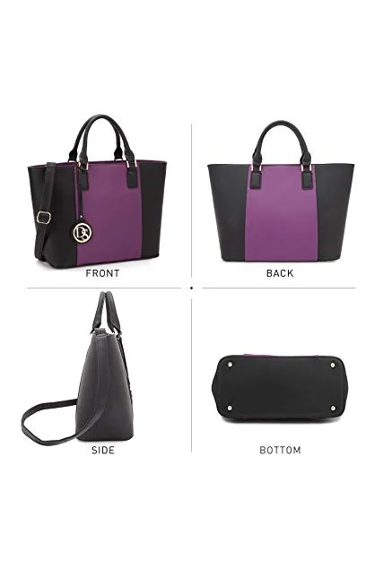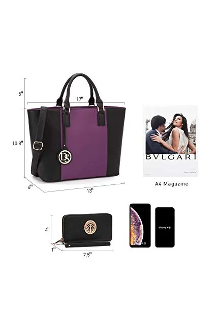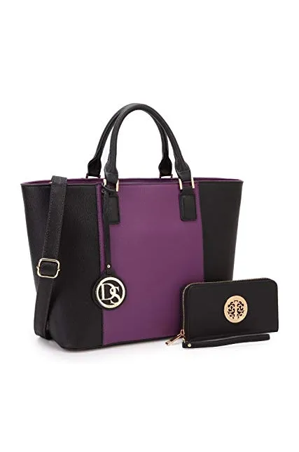 - DESIGN: Women fashion two tone tote bags with matching wallet with a fashion tassle. Top zip closure, gold hardware and bottom studs. It can be used as a women tote bag, daily purse, shoulder bag, top handle bag, work bag, laptop bag etc.