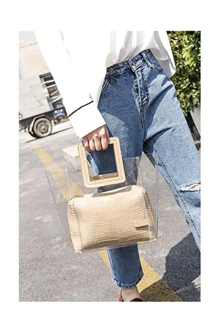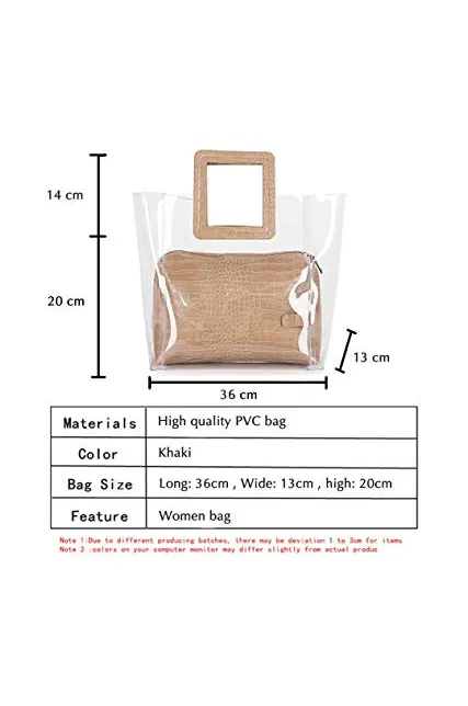 - 2 in 1 style. Each clear handbag is with a purse inside.