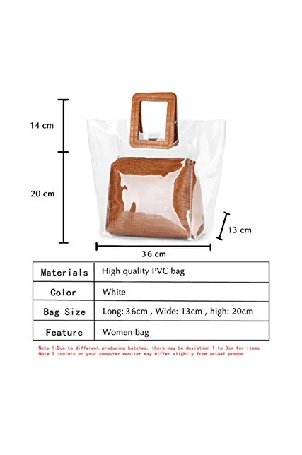 - 2 in 1 style. Each clear handbag is with a purse inside.