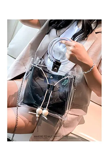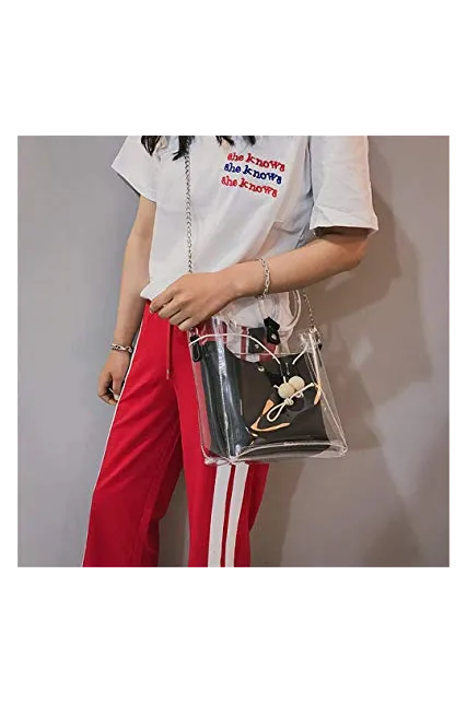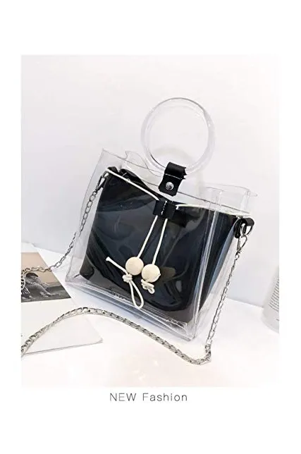- 2 in 1 style. Each clear handbag is with a purse inside.