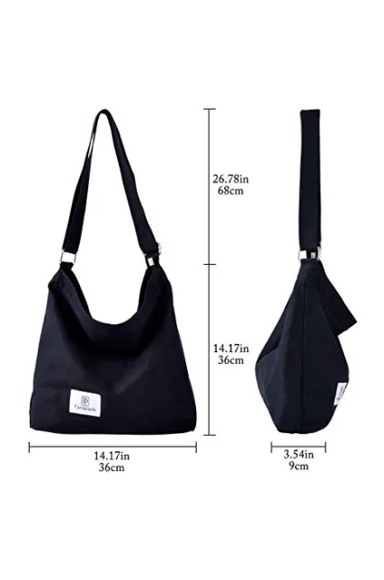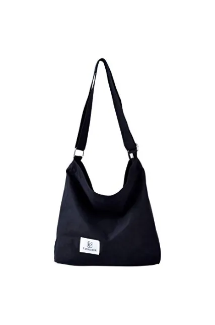 Fanspack Women's Canvas Hobo Handbags Simple Casual Top Handle Tote Bag Crossbody Shoulder Bag Shopping Work Bag (Black-Original Design)