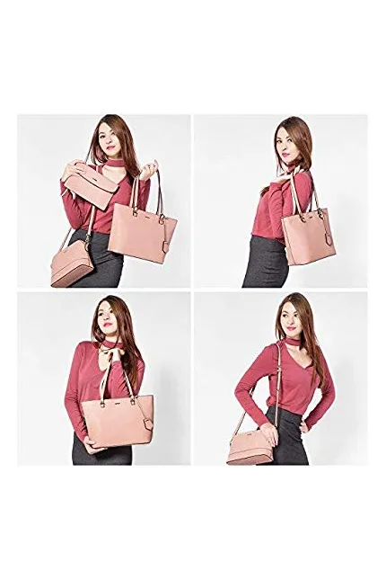 - 【MATERIAL】 Well made of high quality cross-textured synthetic leather with durable gold hardware. Detailed stitching with smoothly zippers. The purse can stand up on its own. The large tote is not with a long strap to be a crossbody,the cross body strap is for the middle bag.Top zipper closure. Tote & shoulder bag: 1 main compartment, 1 zipper pocket and 2 slot pockets.One clutch,you can use it for an extra pocket.