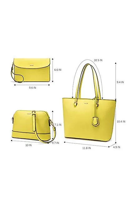 - 【DIMENSION】Top Handle Tote Bag: 11.8"x4.5"x9.8"(LxWxH)/30CMx11.5CMx25CM(LxWxH), Handle Height:9.4"/24cm , Handle Length:20.5"/52cm. Medium Messenger Handbag: 10"x3.7"x7.1"(LxWxH)/25.5CMx9.5CMx18CM(LxWxH),Shoulder Length:44.9"-51.2"/114CM-130CM. Wallet Clutch Purse : 9.6"x6.6"(LxH)/24.5CMx16.7CM(LxH). Bag set Weight:2.5lb,Tote weight 1.3lb,crossbody bag weight 0.75lb,wallet clutch weight 0.42lb
