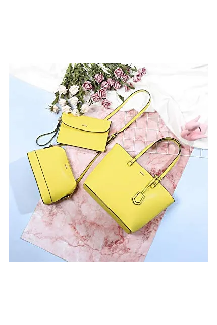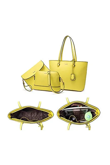 - 【MATERIAL】 Well made of high quality cross-textured synthetic leather with durable gold hardware. Detailed stitching with smoothly zippers. The purse can stand up on its own. The large tote is not with a long strap to be a crossbody,the cross body strap is for the middle bag.Top zipper closure. Tote & shoulder bag: 1 main compartment, 1 zipper pocket and 2 slot pockets.One clutch,you can use it for an extra pocket.