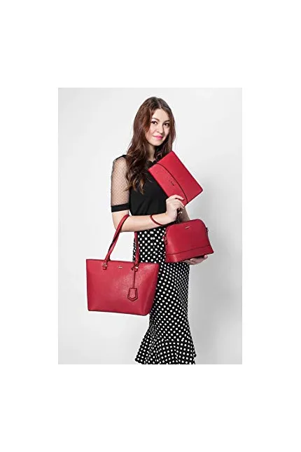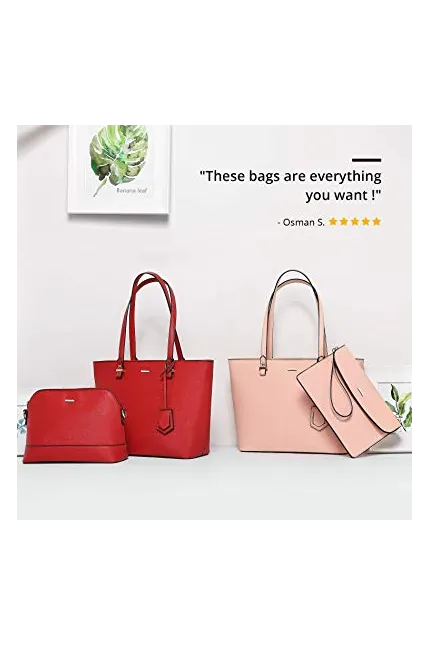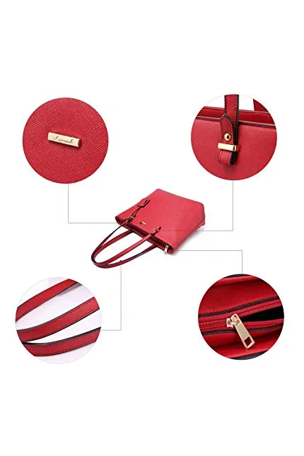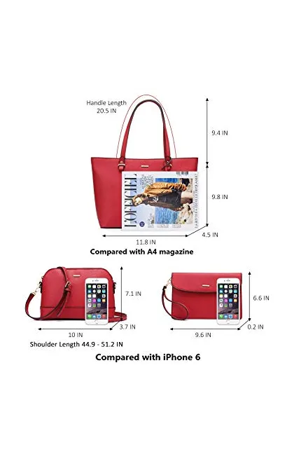 - 【Handbag structure】This gorgeous elegant bags comes with 3pcs sets.1 handbag+1 corss shoulder bag+1 clutch purse . Affordable and practical. Large tote & mid shoulder bag: top zipper closure, 1 main compartment, 1 zipper pocket and 2 slot pockets. The small clutch can be used as an extra pocket. Large enough for A4 products and your most daily items,like iPad, wallet, makeups, phone, little water bottle, perfumes, gloves and other your everyday stuffs and keep them organized .
