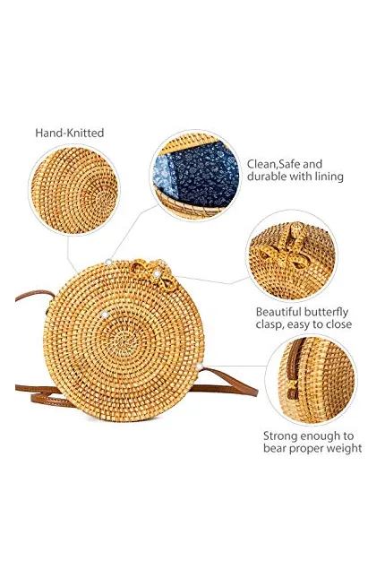- HANDMADE AND NATURE - Each straw bag is made from 100% handwoven Vietnamese rattan which Is stronger than Indonesian rattan,durable, unique and environmental