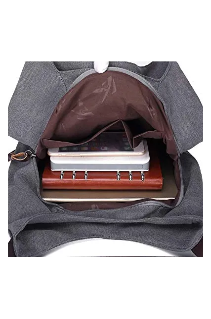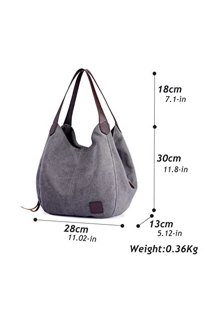 Hiigoo Fashion Women's Multi-pocket Cotton Canvas Handbags Shoulder Bags Totes Purses