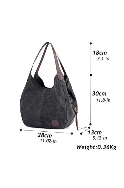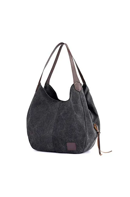 Hiigoo Fashion Women's Multi-pocket Cotton Canvas Handbags Shoulder Bags Totes Purses