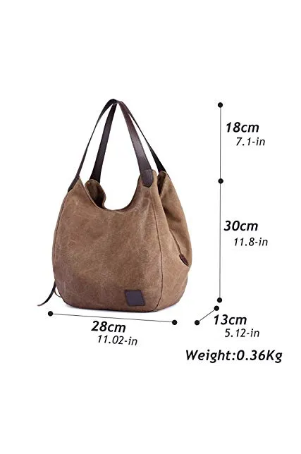 Hiigoo Fashion Women's Multi-pocket Cotton Canvas Handbags Shoulder Bags Totes Purses