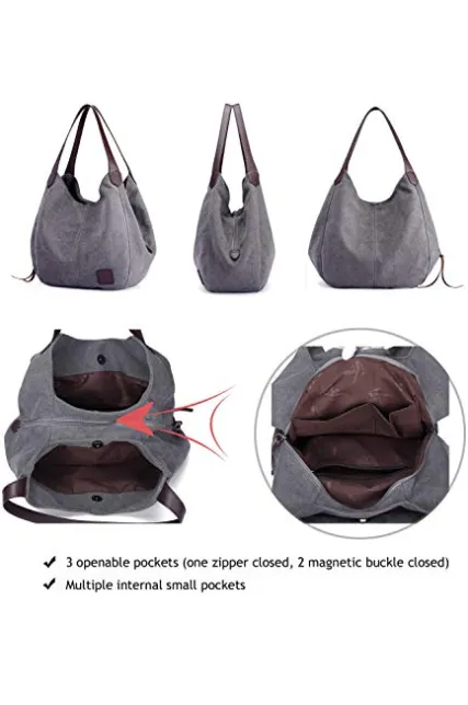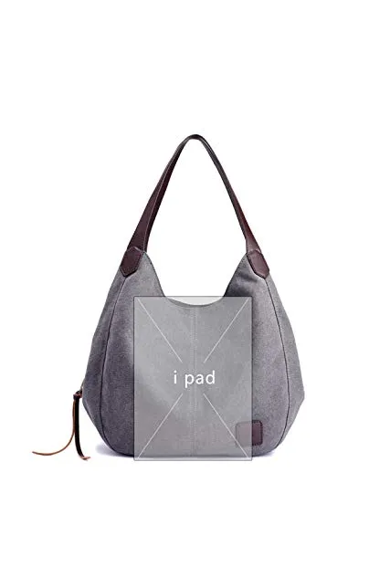 Hiigoo Fashion Women's Multi-pocket Cotton Canvas Handbags Shoulder Bags Totes Purses