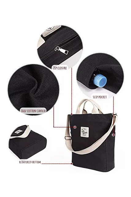 - PERFECT CANVAS TOTE WITH ZIPPER: Made by 16oz cotton canvas, super sturdy, soft and water-washable. Have a zipper across the top and the bottom is reinforced. Can be the essential everyday tote.