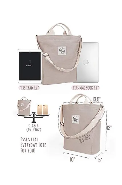 - SPACIOUS and ROOMY: 12x13.5x5 inches. It is roomy enouch for your personal essential stuff as a casual weekend bag. Fit 13" macbook and iPad, A4 magazine and spiral notebook.