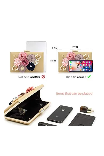 - [ Suitable Occasion ] - The size is: 7.9×5.5×1.6inches, this women flower clutches evening bags can put any size of cellphones, lipstick, keys and some little stuff, is suitable to wedding, banquet, party, cocktail, and ideal gift to family, lover, friends
