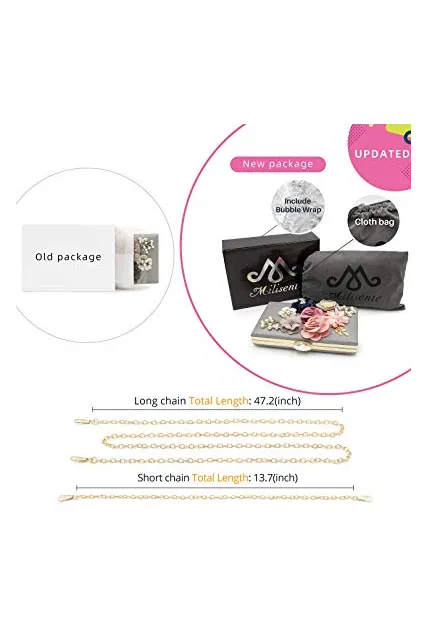 - [ Elegant Brand Design ] - This is Milisente brand women flower clutches evening bags, the front side was decorated variety material simulation flowers, the metal branches embellished by some beadeds and metal leaves