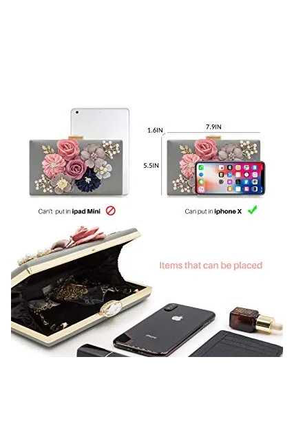 - [ Suitable Occasion ] - The size is: 7.9×5.5×1.6inches, this women flower clutches evening bags can put any size of cellphones, lipstick, keys and some little stuff, is suitable to wedding, banquet, party, cocktail, and ideal gift to family, lover, friends