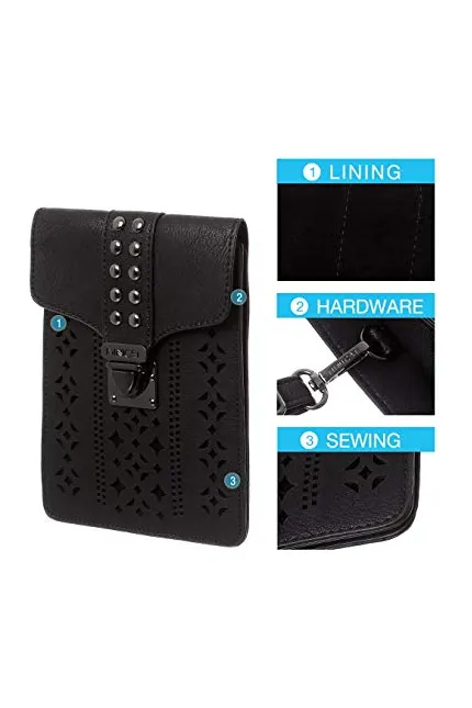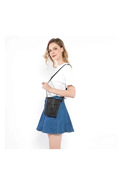 - MINICAT Crossbody phone purse design with hollow texture,which the cutouts in the front allow you to listen to music or hear the ringer without the sound getting muffled.