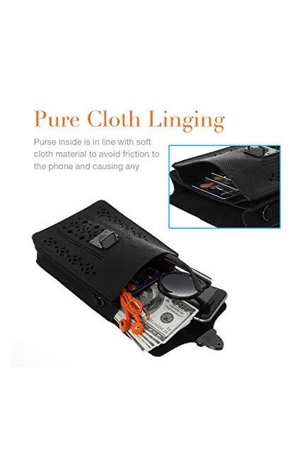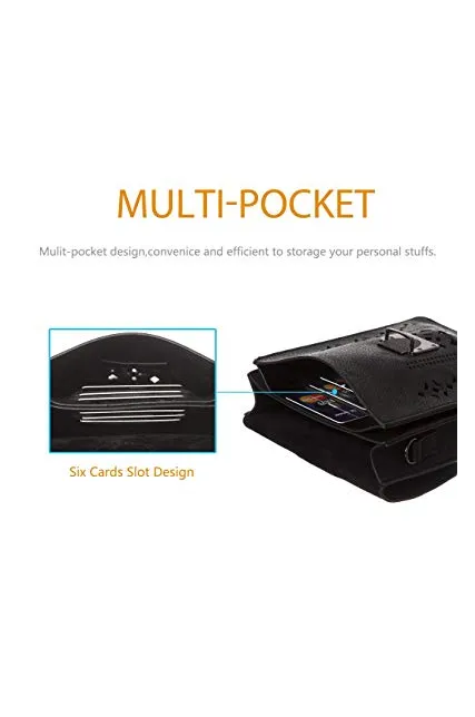 - Cell Phone crossbody bag have SIX CARD SLOTS with RFID Blocking insides,Snug and secure fit(Can hold a PASSPORT), never go digging for your phone in the bottom of your bag.Never again will your iPhone/smartphone fall out of your back jeans pocket.