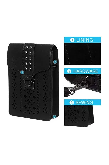 - MINICAT Crossbody phone purse design with hollow texture,which the cutouts in the front allow you to listen to music or hear the ringer without the sound getting muffled.