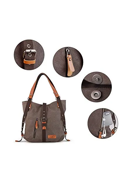 SHANGRI-LA Purse Handbag for Women Canvas Tote Bag Casual Shoulder Bag School Bag Rucksack Convertible Backpack