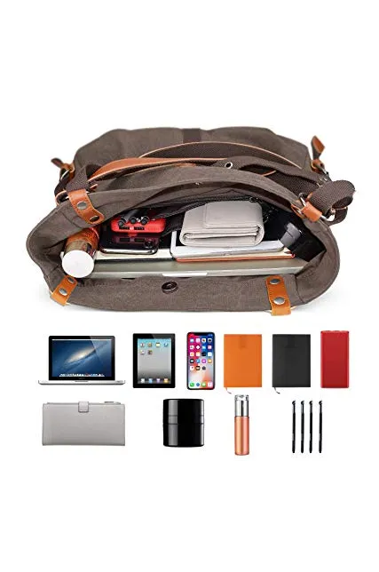 - Main Pocket: main size --(12''L×4''W×13''H), hasp closure with 1 compartment -- easy to hold up to 13-inch laptop, IPAD, umbrella wallet, towel, cosmetic, clothes and other daily things; 1 padded sleeve (10‘’H×12‘’L) for your tablet; 2 zipper pockets and 1 pouch -- for your little stuffs