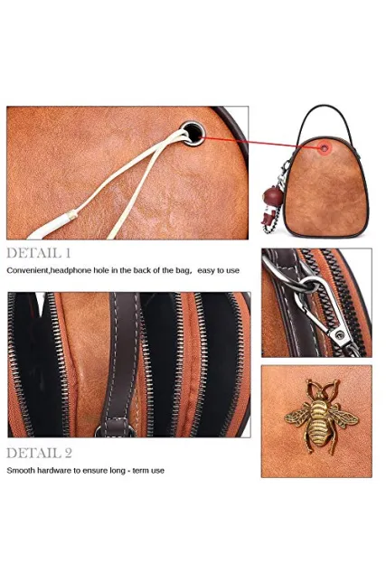- FEATURES: 3 Zipper pockets.Adjustable Crossbody Strap.Decorative Hardware.The back of crossbody bag has a headphone hole for easy use.