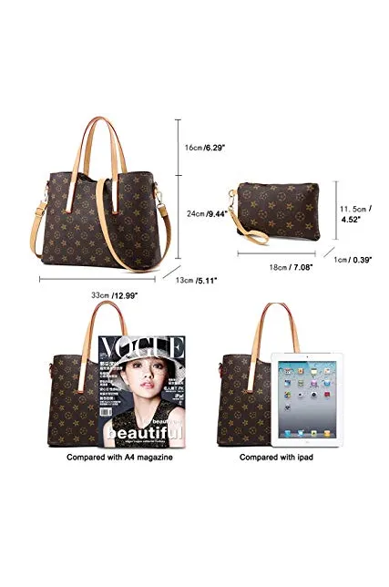 - Specifications: top handle handbag : 12.99"*9.44"*5.11", the handle height : 6.29" ; detachable strap leagth:49.25" ;shoulder bag : 7.87" * 5.11" * 0.78";wallet:7.87"*0.78"*5.11",the large is very special, you can have two different shape transformations.