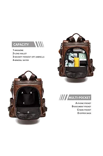 Women Backpack Purse PU Leather Anti-theft Casual Shoulder Bag Fashion Ladies Satchel Bags