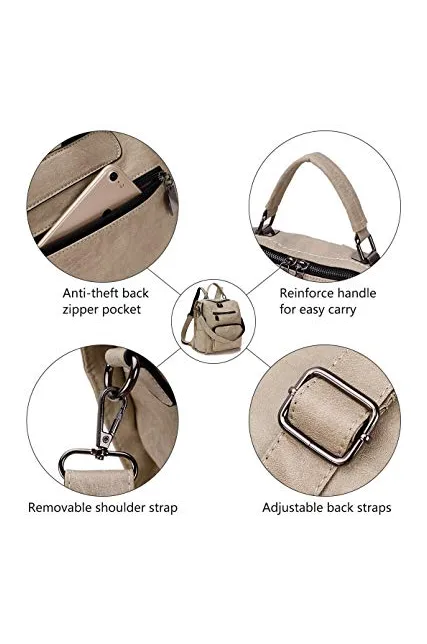 - ✿3 Ways to Carry-This leather backpack features top handle, a detachable shoulder strap and adjustable back straps.You can carry it as a handbag,shoulder bag and backpack for any occasion.The zippers are smooth with extra long puller for easy open and close.The reinforce handle and enhanced back straps(fabric stitching with leather)designed to make the strap more sturdy and non-slip.This cute and chic woman shoulder bag with removable shoulder strap fits for shopping,traveling,working,dating.