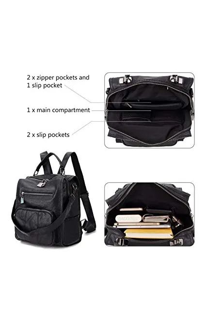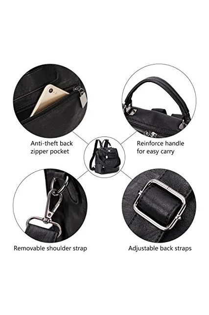 - ✿3 Ways to Carry-This leather backpack features top handle, a detachable shoulder strap and adjustable back straps.You can carry it as a handbag,shoulder bag and backpack for any occasion.The zippers are smooth with extra long puller for easy open and close.The reinforce handle and enhanced back straps(fabric stitching with leather)designed to make the strap more sturdy and non-slip.This cute and chic woman shoulder bag with removable shoulder strap fits for shopping,traveling,working,dating.