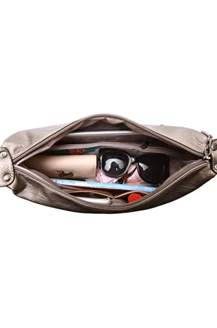 - Capacity: Please note the size carefully: 11.4" x 4.7" x 7.9"(Length x Width x Height). Not large, tends to be Medium Size, and it is ok for everyday use, holds your daily essentials such as Ipad, mobile phone, cosmetics, wallet and more.