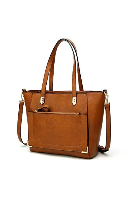 - Diffrent Ways to Carry: Leather Tote---You can use this as large tote bag to carry your stuffs when you going out; Shoulder Purse---It contains one adjuatbel shoulder strap so you can carry it a shoulder bag as well;Crossbody---you can carry it as a cross body purse when your hands are not free(like when you are carrying your baby/kids); Book Bag/Laptop Bag---It is just perfect size, it can fit 11''Mac and ipad very well.