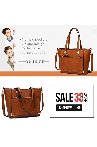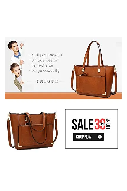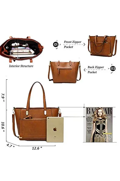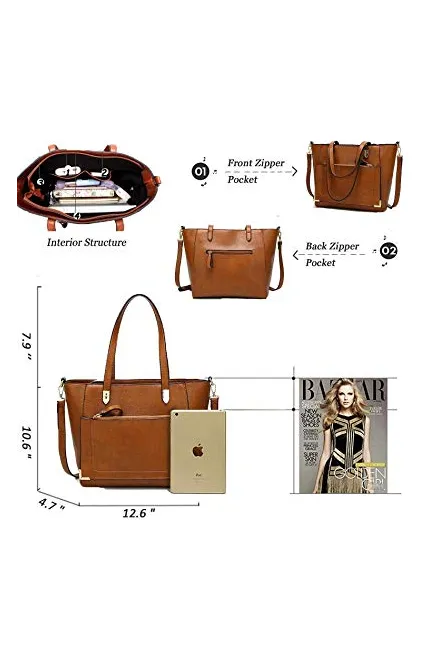 - Diffrent Ways to Carry: Leather Tote---You can use this as large tote bag to carry your stuffs when you going out; Shoulder Purse---It contains one adjuatbel shoulder strap so you can carry it a shoulder bag as well;Crossbody---you can carry it as a cross body purse when your hands are not free(like when you are carrying your baby/kids); Book Bag/Laptop Bag---It is just perfect size, it can fit 11''Mac and ipad very well.