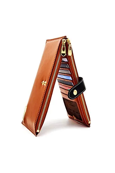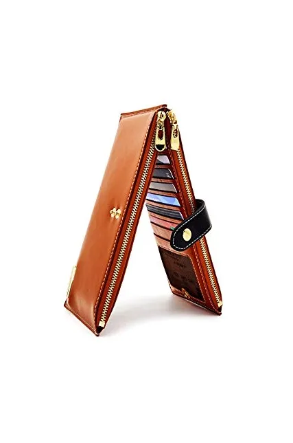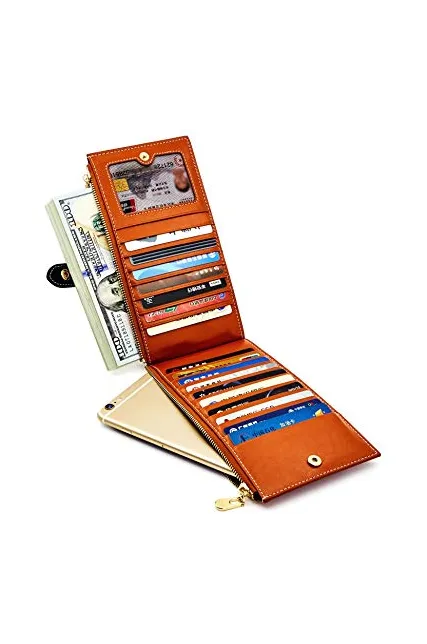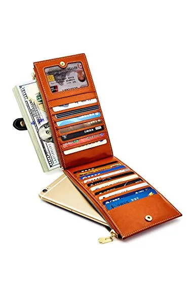 - LARGE CAPACITY: 17 Card slots,1 I.D. holder and 2 zipper pockets. Your checkbook, receipts, ID, cards and cash can be well organized in this powerful wallet! Also, you can put your cell phone(fit up to IPHONE 8 plus sizes) in these 2 zip pockets! It is enough for daily use, very convenient and practical.