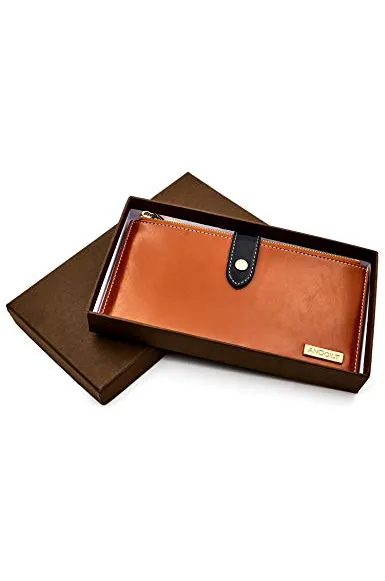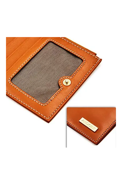 ANDOILT Women's Genuine Leather Wallet RFID Blocking Credit Card Holder Zipper Purse Cell Phone Handbag