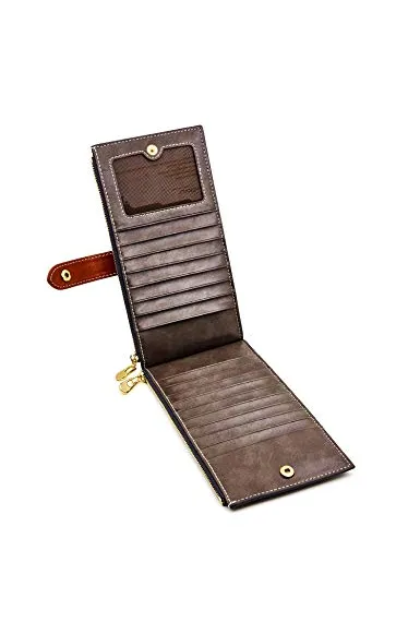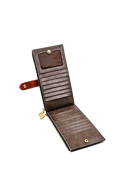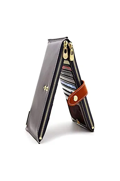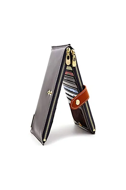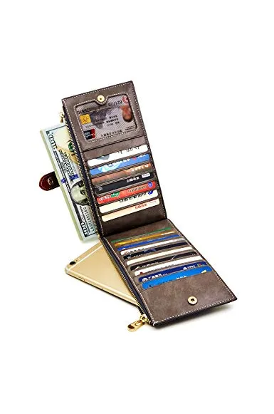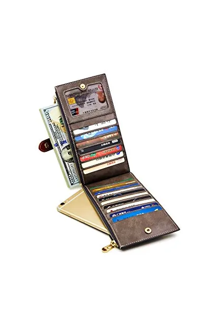 - LARGE CAPACITY: 17 Card slots,1 I.D. holder and 2 zipper pockets. Your checkbook, receipts, ID, cards and cash can be well organized in this powerful wallet! Also, you can put your cell phone(fit up to IPHONE 8 plus sizes) in these 2 zip pockets! It is enough for daily use, very convenient and practical.