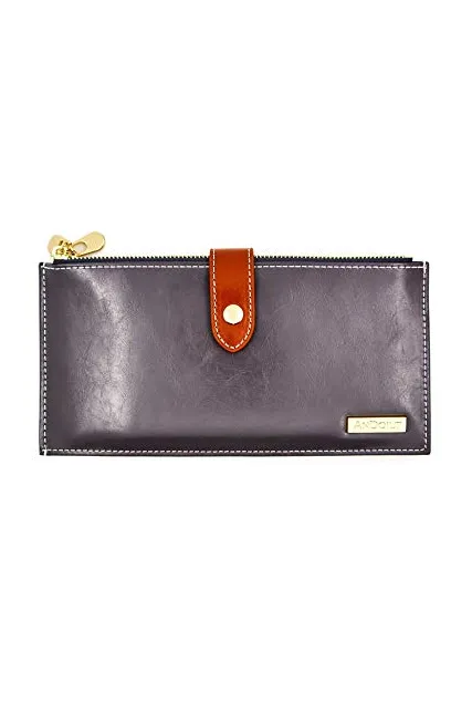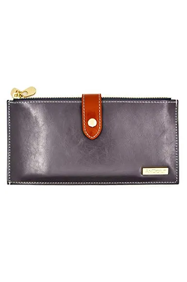 ANDOILT Women's Genuine Leather Wallet RFID Blocking Credit Card Holder Zipper Purse Cell Phone Handbag