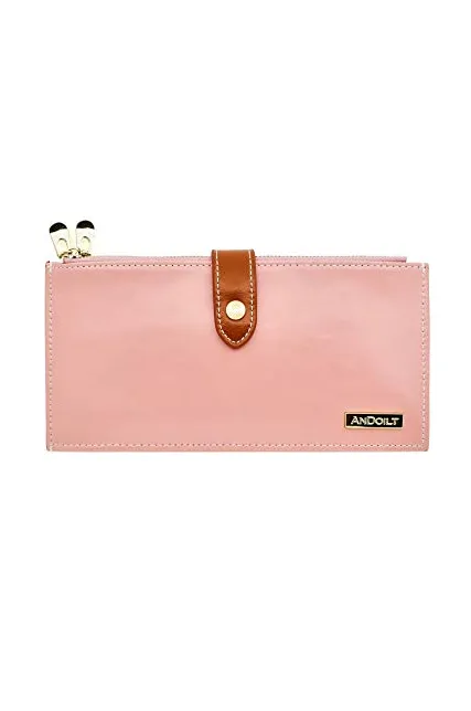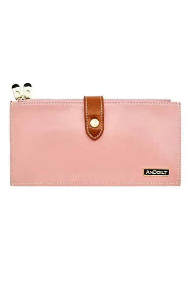 ANDOILT Women's Genuine Leather Wallet RFID Blocking Credit Card Holder Zipper Purse Cell Phone Handbag