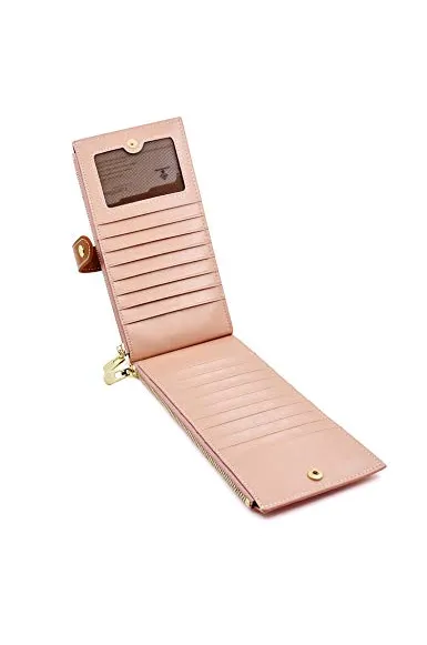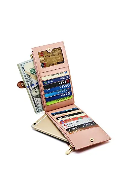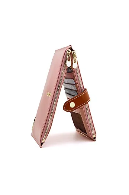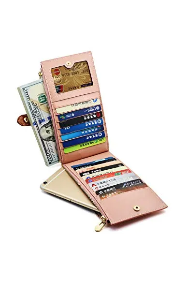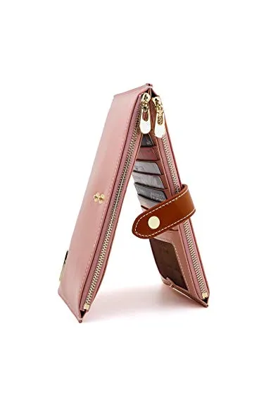 - LARGE CAPACITY: 17 Card slots,1 I.D. holder and 2 zipper pockets. Your checkbook, receipts, ID, cards and cash can be well organized in this powerful wallet! Also, you can put your cell phone(fit up to IPHONE 8 plus sizes) in these 2 zip pockets! It is enough for daily use, very convenient and practical.