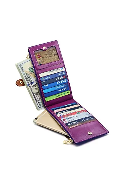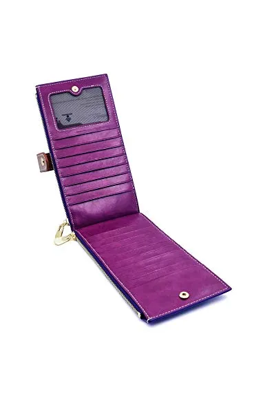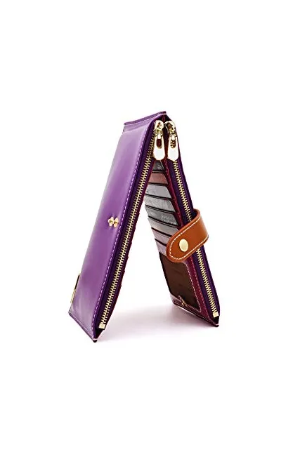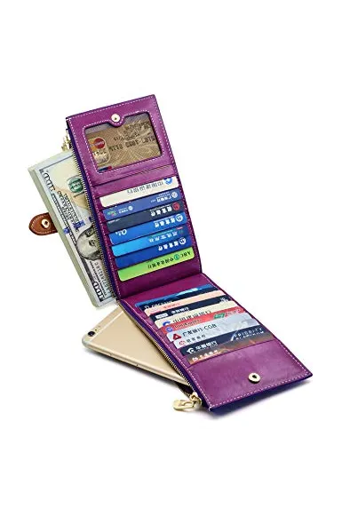 - LARGE CAPACITY: 17 Card slots,1 I.D. holder and 2 zipper pockets. Your checkbook, receipts, ID, cards and cash can be well organized in this powerful wallet! Also, you can put your cell phone(fit up to IPHONE 8 plus sizes) in these 2 zip pockets! It is enough for daily use, very convenient and practical.